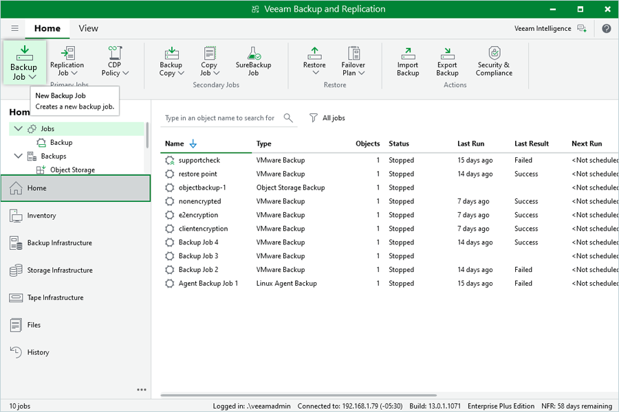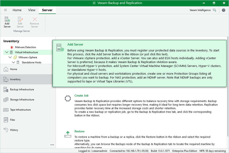 5. Install the Veeam Backup & Replication application on a supported OS on your machine.