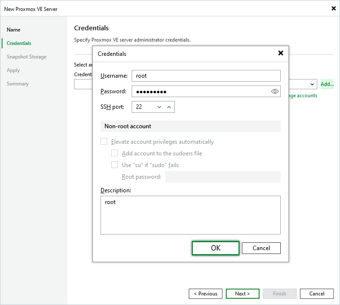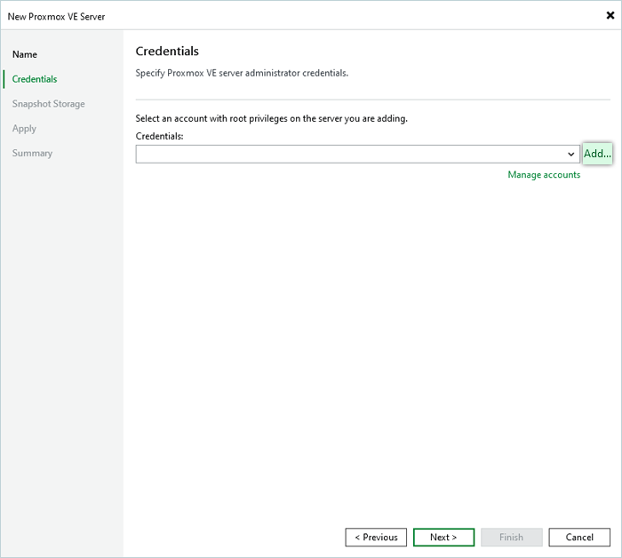 6. Under Credentials, click Add to add your ProxMox Credentials.