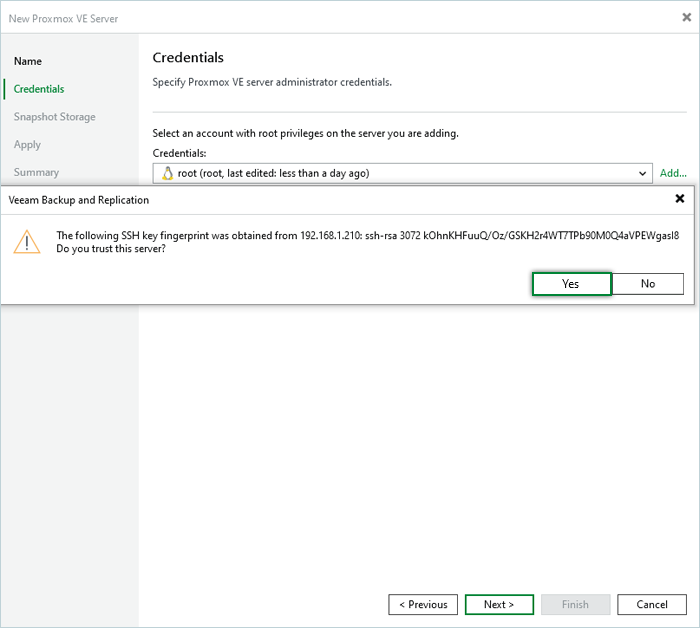 4. Click Yes in the SSH Key confirmation pop-up, then click Next.