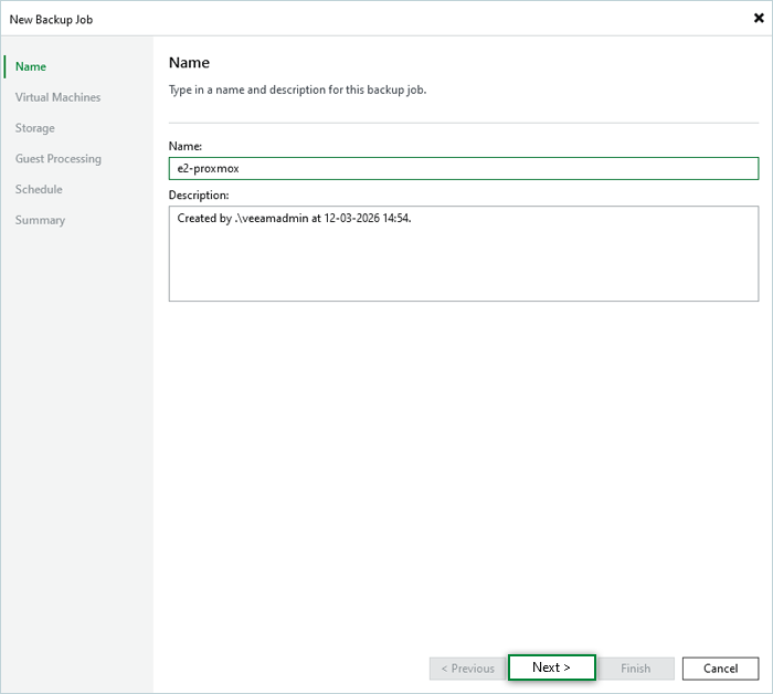 3. In the New Backup Job window, enter a name for your Backup Job and click Next.