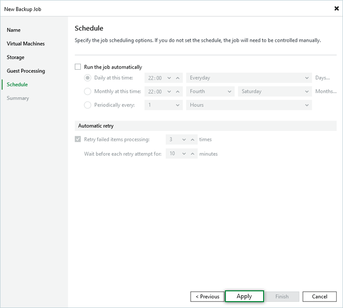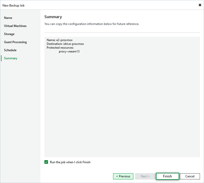8. Optionally, select the Run the job when I click Finish checkbox.