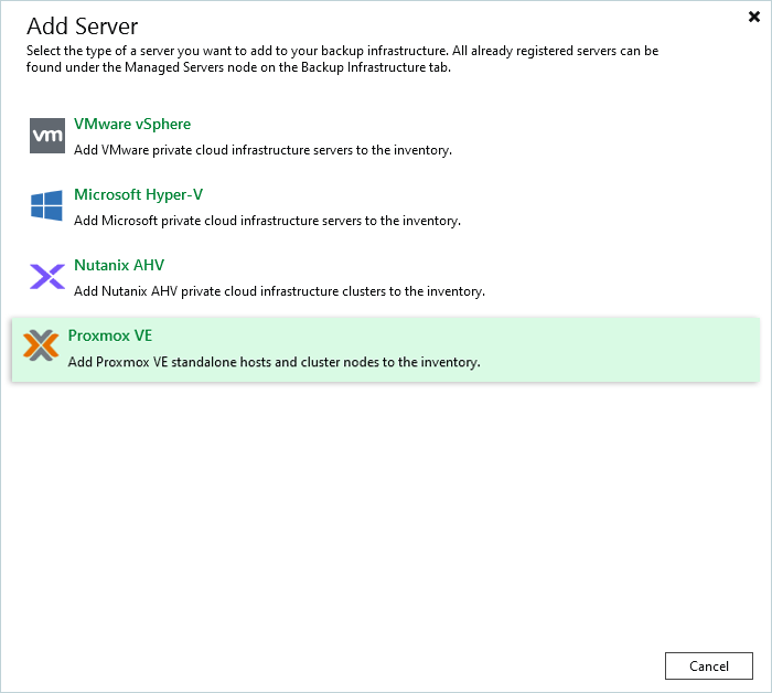 2. In the New Backup Job window, click Virtual Machine, then select Proxmox VE.